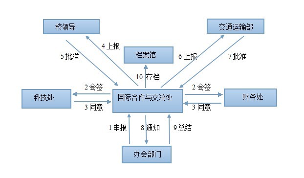 6上报:校领导同意后,国际合作与交流处负责行文报交通运输部国际合作司审批