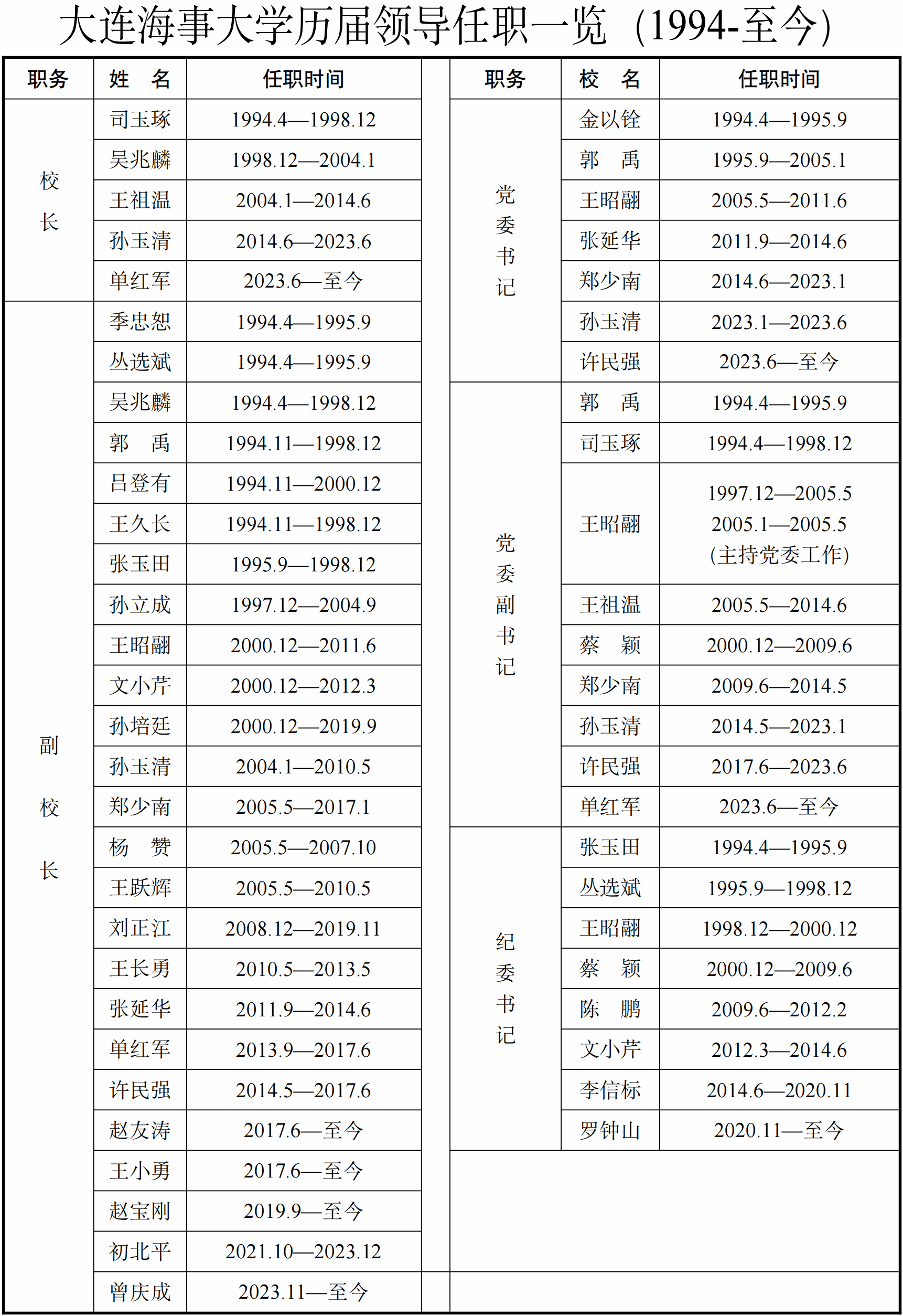大连海运学院历届党政领导任职一览(1953—1994)