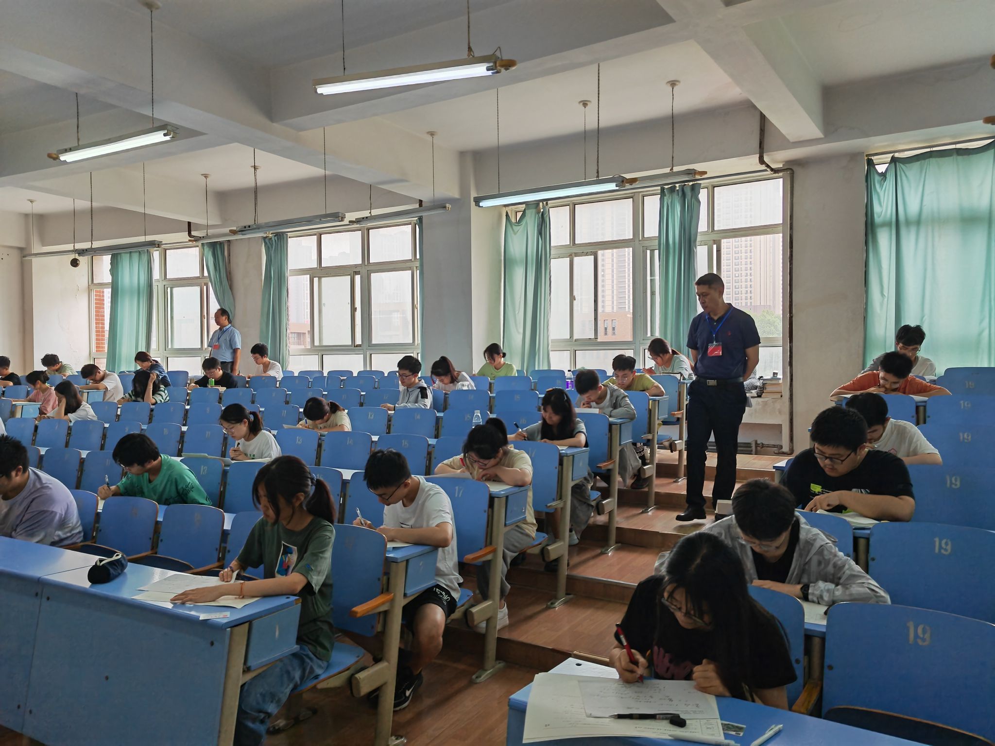 根据学校教学安排,18周为考试周(6月19-25日)。共安排考试科目188个,考场885个,考生32080人次。从整体看,在校、院两级领导的高度重视下,在巡视人员和监考教师共同努力下,全校考场秩序井然,监考教师按时到岗,严格执行考场操作规程;巡视人员认真负责,督导巡查工作到位,维护了考试的公平、公正,营造了良好的考风。
