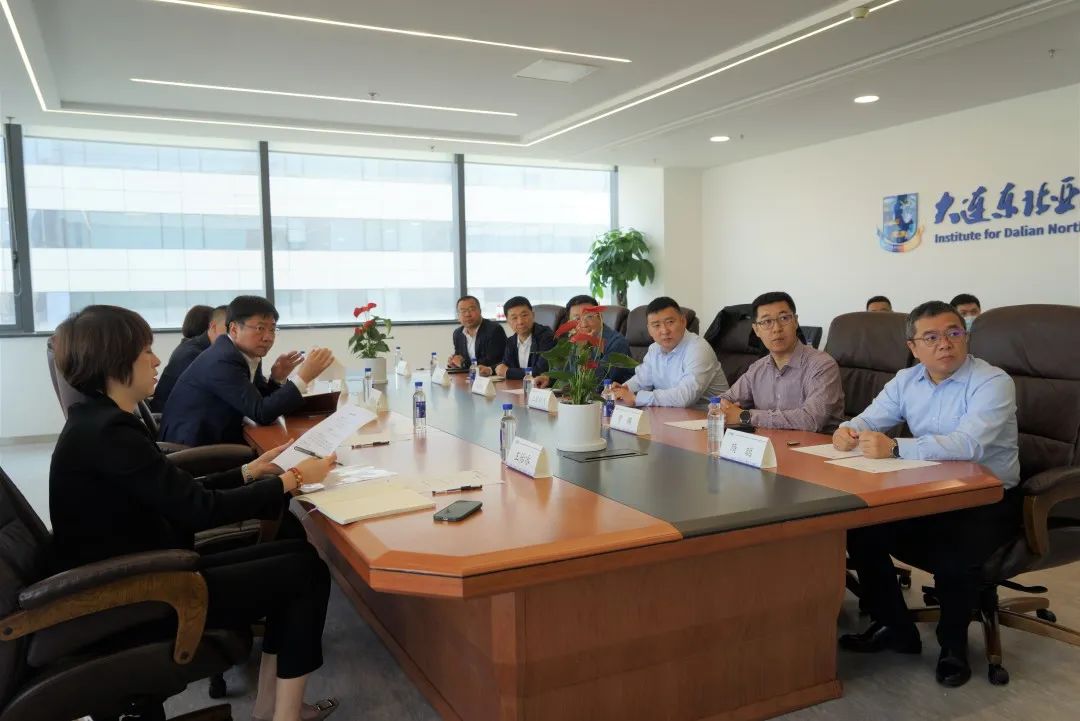 2022年5月18日,大连高新区党工委副书记、管委会主任薛雁翔一行来大连东北亚国际航运中心研究院(简称“研究院”)调研,并围绕港航物流供应链产业发展、物流平台企业数字化赋能、港航物流人才培养等议题,深入协商推进高新区、研究院、港航企业间的政产学研用一体化建设。研究院理事长单位大连市交通运输局综合运输处副处长上官剑飞,研究院理事顾问单位中铁铁龙集装箱物流股份有限公司常务副总杨学东、企业管理部部长李长宏,研究院院长匡海波教授、副院长贾鹏教授、航运金融保险研究所所长隋聪教授陪同调研并座谈交流。