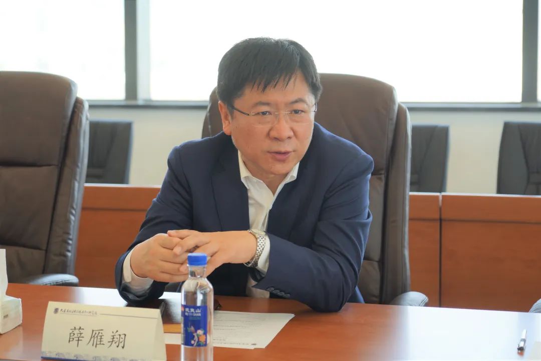 会前,研究院副院长贾鹏教授为薛雁翔副书记、主任一行介绍“诚运天下”供应链综合服务平台和研究院实验平台建设情况。会上,研究院院长匡海波教授,中铁铁龙集装箱物流股份有限公司常务副总杨学东、部长李长宏,市交通运输局副处长上官剑飞,围绕港航物流企业发展、智慧物流平台建设、港航人才培养、高新区推介等议题向薛雁翔副书记、主任进行汇报。