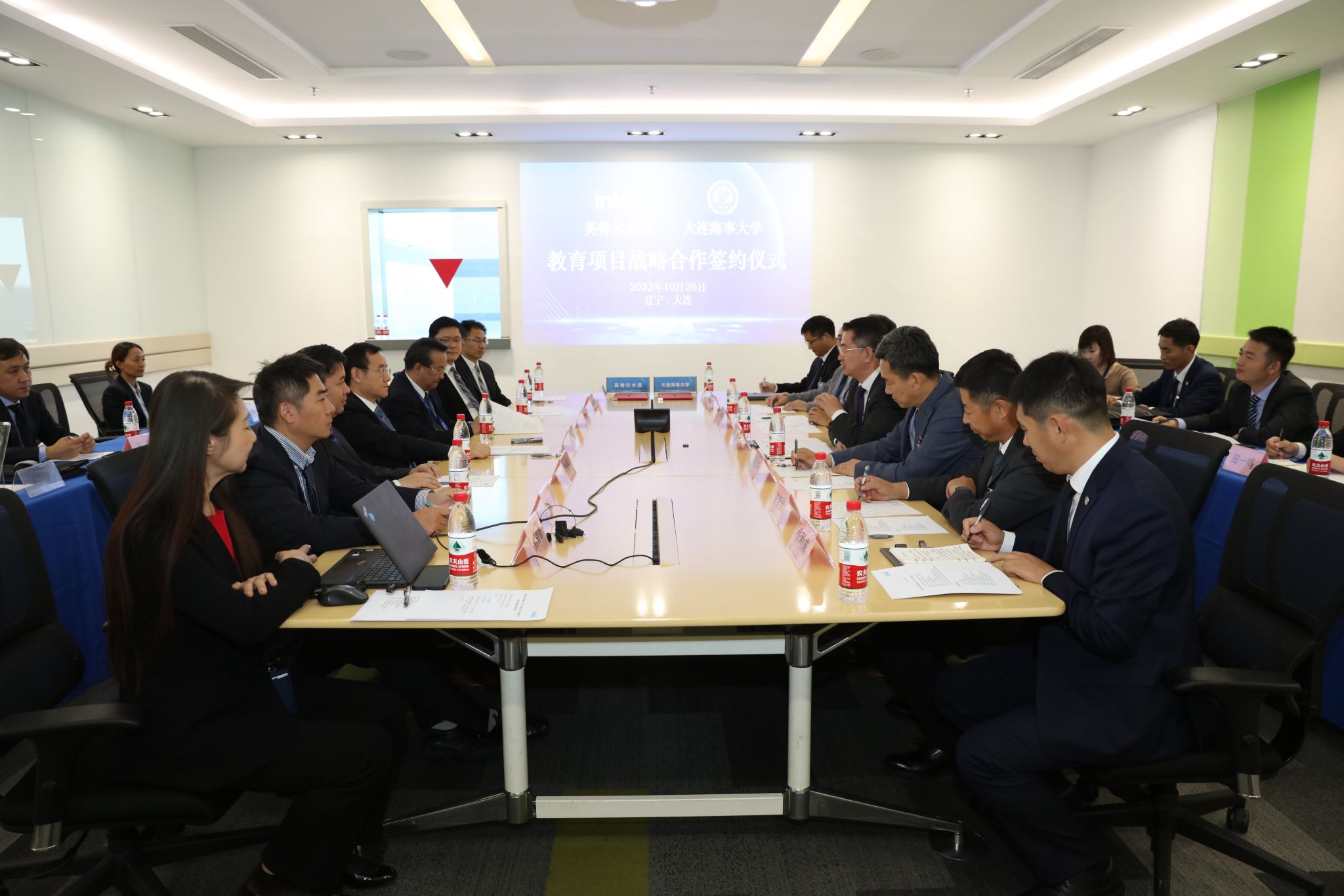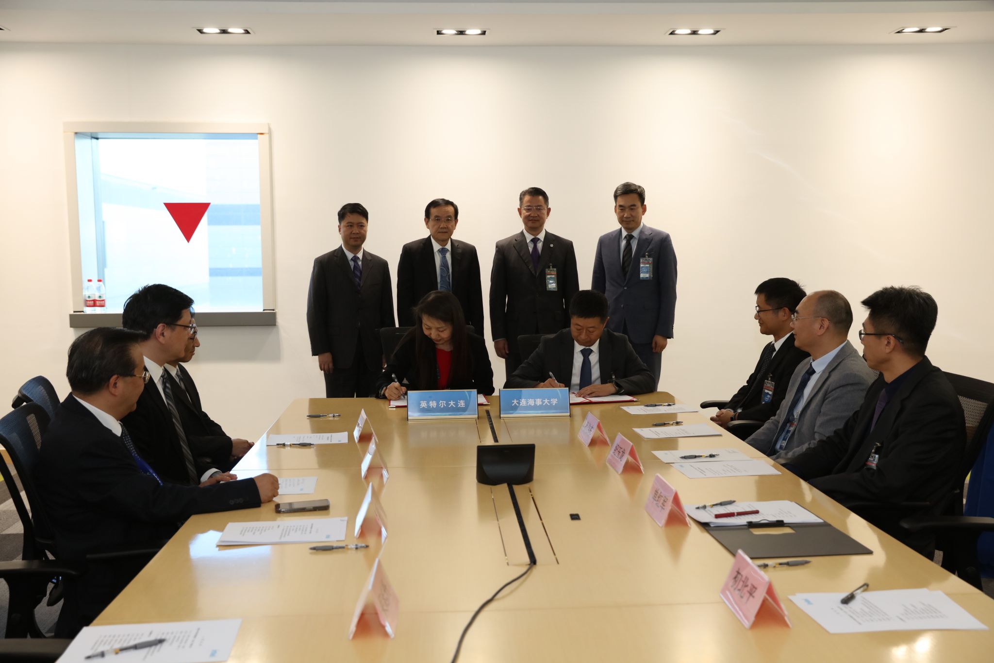 英特尔半导体存储技术(大连)有限公司战略规划部资深总监龚彬、人力资源总监周韶华、首席工程师兼技术指导委员会联席主席刘增涛、化学机械平坦化总监兼技术指导委员会联席主席王科,学校党委学生工作部、教务处、科技处、研究生院、校友事务与合作处、理学院等部门和单位负责同志参加签约仪式和座谈。