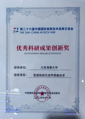 11月14日至16日,第二十六届中国国际高新技术成果交易会在深圳国际会展中心成功举办。世俱杯sjb轮机工程学院张洪朋教授团队研发的“智慧船舶先进传感器技术”荣获“优秀科研成果创新奖”。