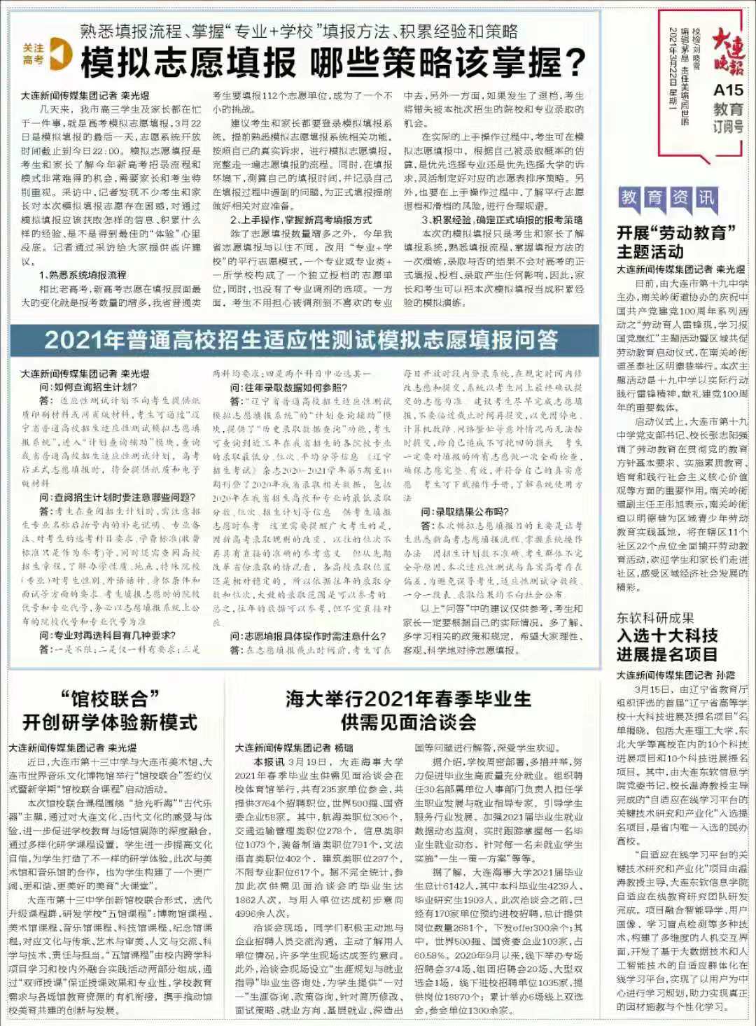 【大连晚报】海大举行2021年春季毕业生供需见面洽谈会