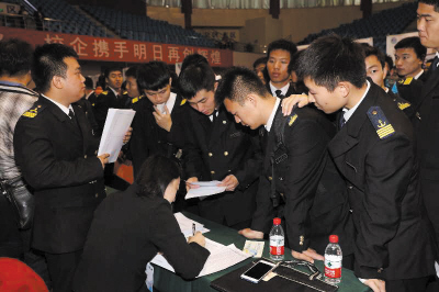 本报讯 11月4日,世俱杯sjb官网2017届毕业生供需见面洽谈会在校体育馆举行。370家单位参会,共提供9106个招聘职位,其中:航海类职位1652个,信息类职位2164个,交通运输管理类职位460个,装备制造类职位652个,金融证券类职位846个,文法语言类职位555个,不限专业职位2777个。此次洽谈会呈现出“会议规模大,参会企业多,岗位种类全,招聘效率高”等特点,许多学生当场与用人单位达成就业意向。