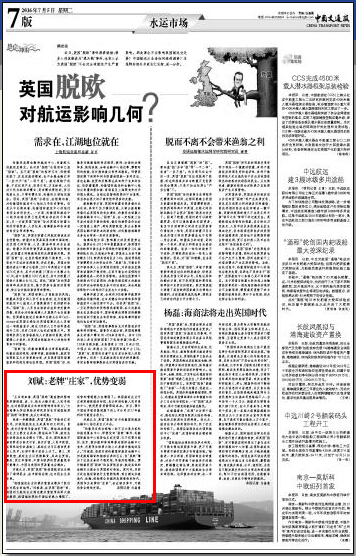 刘斌认为,英国“脱欧”给我国航运企业提供了难得机会,在市场低谷期,这次机会尤其珍贵。