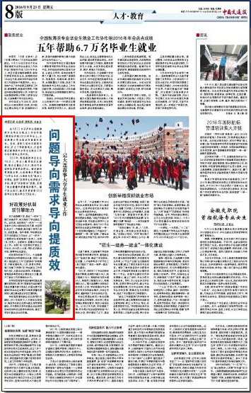 “就业工作倒逼我们科学制定专业培养目标,建立统筹规划的创新创业管理体制,树立‘以学为主’理念,改进教育教学方法。”学校教务处相关负责人说,同时把创新创业教育和诚信教育贯穿人才培养全过程,将大学生创新创业实践训练融入本科人才培养方案,逐步建立创新人才培养体系。