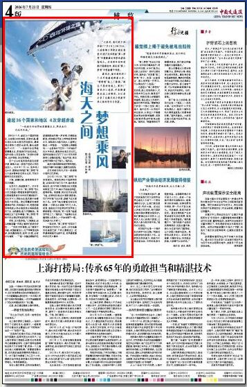 环球航行也是一个很好的交流学习的过程。“帆船运动欧美领先我国几十年。在欧美的很多地方,帆船并不是贵族运动,平民百姓参与程度很高。法国勒阿佛尔市只有几十万人,却有一个设施非常好的游艇码头,能够停3000多条船,而停泊费用非常低,停一天才不到20美元。问其缘故,是因为政府投资。通过发展帆船产业来带动城市的其他消费,我觉得这个很有借鉴性。”高民感慨万千,“国内帆船产业现在发展得很好,但是总量不够,我认为应该先把门槛降低,让大多数人能参与进来。我想告诉更多的人,环球不是难事,只要你安全、科学地去航海,大家都可以去环球。”