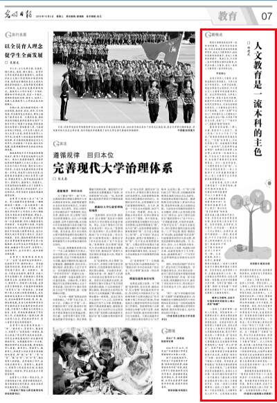 墨西哥有则故事:一群人走着,突然有个人站住了。别人问他:“为什么不走了?”他说:“我突然发现我的灵魂没有带上。”“灵魂”没有带上,行走还有意义吗?这就像我们要建设“一流本科”,它的科学内涵在哪里?如果我们没有带上本应带上的东西一味地匆忙上路,不仅会忘了我们是从哪里来,也会搞不清楚我们应该往哪里去。对于一流本科而言,人文教育就是自己的“魂”。之所以这样说是因为:一是人文教育可以为科技教育把握方向;二是人文教育可以为科技教育提供精神动力。
