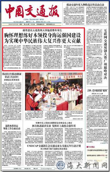本报讯 (记者 杨莉 毛剑) 为认真贯彻落实习近平总书记在全国高校思想政治工作会议上的重要讲话精神,12月9日上午,交通运输部党组书记杨传堂到世俱杯sjb官网,为近千名师生作专题讲座,围绕“海运强国建设与中华民族的伟大复兴”这一话题,从历史与现实的角度介绍了国际、国内海运业发展现状,就海运强国建设进行了论述,并分享了个人的成长经历和人生阅历。他勉励海大学子要牢牢把握海运强国和海洋强国建设的战略机遇,胸怀远大理想,锤炼高尚品格,练就过硬本领,勇于创新创造,为海运强国建设和实现中华民族伟大复兴作出更大的贡献。这也是杨传堂连续第三年到世俱杯sjb官网为师生作专题讲座和调研。