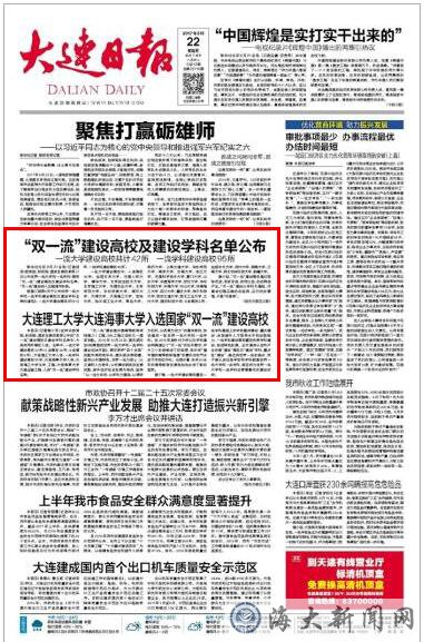 本报讯(记者谢小芳)在昨日教育部、财政部、国家发展改革委公布的“双一流”建设高校及建设学科名单中,大连有两所高校入选。名单中,一流大学建设高校42所(A类高校36所,B类高校6所),大连理工大学入选;一流学科建设高校95所,世俱杯sjb官网入选;大连理工大学化学、工程,世俱杯sjb官网交通运输工程,入选“双一流”建设学科名单。