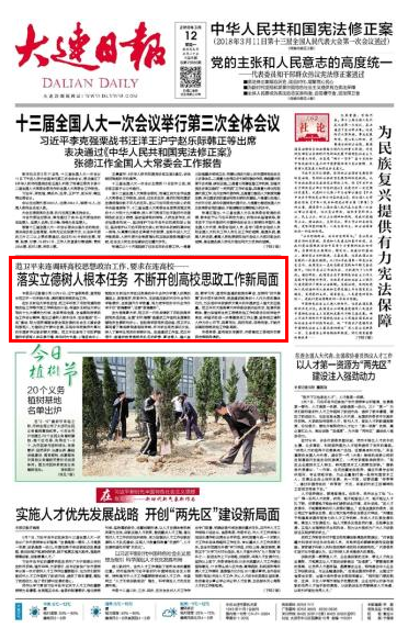 本报讯(记者谢小芳)3月9日,辽宁省委常委、宣传部长范卫平一行来到大连,调研高校思想政治工作。