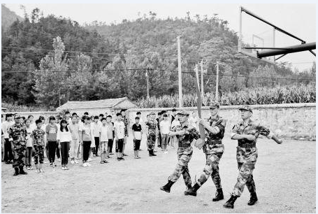 8月1日,建军节,7时30分,60多名学生在支教团队的带领下举行升国旗仪式。