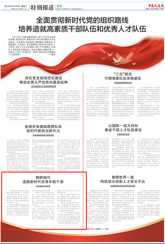世俱杯sjb官网党委在交通运输部党组的坚强领导下,认真贯彻习近平新时代中国特色社会主义思想,重点围绕“把方向、定目标、强举措”,高度重视干部队伍建设,特别是在大力发现培养选拔优秀年轻干部上下功夫。