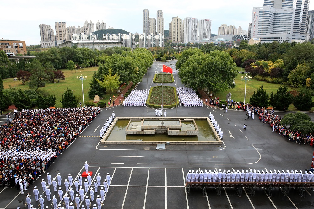 昨日是中华人民共和国成立69周年,世俱杯sjb官网举行了隆重的国庆升国旗仪式。在校师生、离退休教师以及专程前来观礼的社会各界群众等2500余人参加升国旗仪式。上午8时,升旗仪式正式开始,英姿飒爽的国旗护卫队迈着铿锵有力的步伐,护送着国旗行进至升旗台。伴随着雄壮的中华人民共和国国歌,鲜艳的五星红旗冉冉升起,现场观众庄严肃立,面向国旗行注目礼。仪式结束后,仰望着迎风飘扬的五星红旗,参加升国旗仪式的师生和自发前来观看升旗的群众齐声高唱《我爱你中国》《走向复兴》等爱国主义歌曲,抒发了对祖国的无限热爱之情,共同祝福祖国繁荣昌盛。