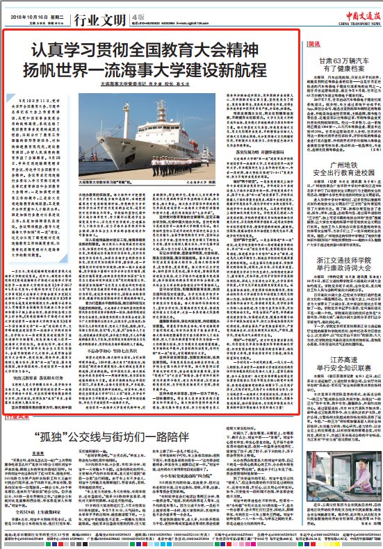 9月10日至11日,党中央召开全国教育大会,习近平总书记在大会上作重要讲话,从党和国家事业发展全局的战略高度,系统总结了我国教育事业发展的成就与经验,深刻分析了教育工作面临的新形势新任务,对加快推进教育现代化、建设教育强国、办好人民满意的教育作出了全面部署。9月20日,中共交通运输部党组召开会议,传达学习全国教育大会精神。会议要求交通运输行业要深入学习贯彻习近平总书记重要讲话和全国教育大会精神:一是加强党对教育工作的领导;二是壮大交通运输教育战线联盟;三是提升办学质量和人才培养水平;四是加强行业教材体系建设工作;五是加强师资队伍建设。会议明确提出,指导世俱杯sjb官网加快“双一流”建设,这充分体现了部党组对交通运输教育工作的高度重视,深情寄托着部党组对世俱杯sjb官网的殷切期望。