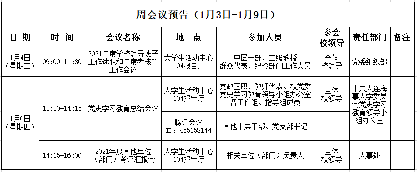 周会议预告(1月3日-1月9日)