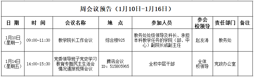 周会议预告(1月10日-1月16日)