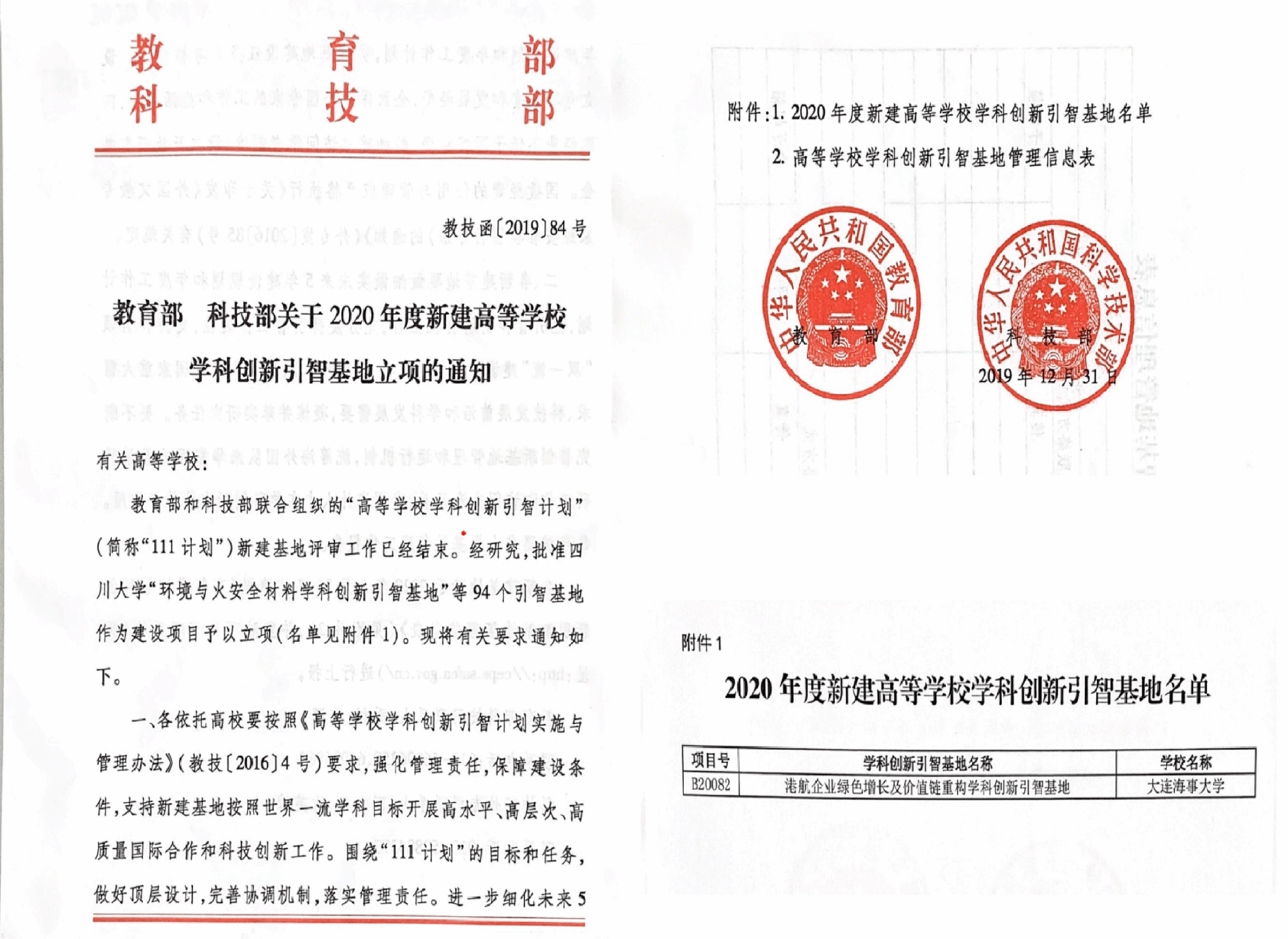 港航企业绿色增长及价值链重构学科创新引智基地(以下简称引智基地)是由教育部于2020年1月31日正式批准立项的国家级引智基地。2020年起,世俱杯sjb官网综合交通运输协同创新中心团队负责建设该引智基地。