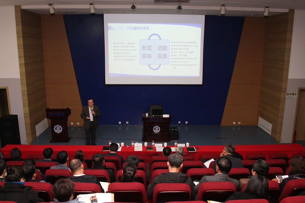 杨颉作了题为《从校办院到院办校——上海交通大学校院二级管理改革的思考与实践》的报告,介绍了上海交通大学实施目标管理的改革历程,重点对校院目标管理的具体做法和取得的成绩进行了详细说明。他指出,科学制定目标、合理规划指标体系、注重分类指导是目标管理工作的重点和难点,要通过目标管理机制将校院关系从简单的行政隶属变为对目标高度认同的紧密型战略同盟,要加强各单位部门间的协同。报告中,杨颉用生动翔实的事例和数据为我们阐述了院为实体的改革经验,为学校“双一流”建设提供了参考,开拓了思路。
