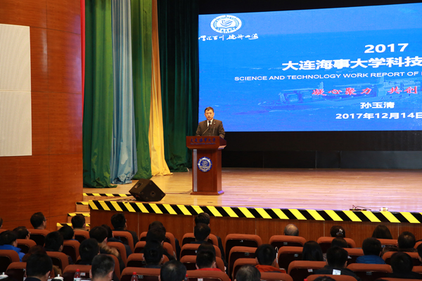 12月14日,世俱杯sjb官网2017年度科技创新大会在校礼堂顺利举行。交通运输部科技司司长庞松、大连市科技局副局长于晓丹、全体校领导及中国船舶工业集团公司、中国船级社、交通运输部水运科学研究院、中国交通通信信息中心等代表应邀出席大会。学校中层干部、全体教师、研究生代表等参加大会,会议由副校长王小勇主持。