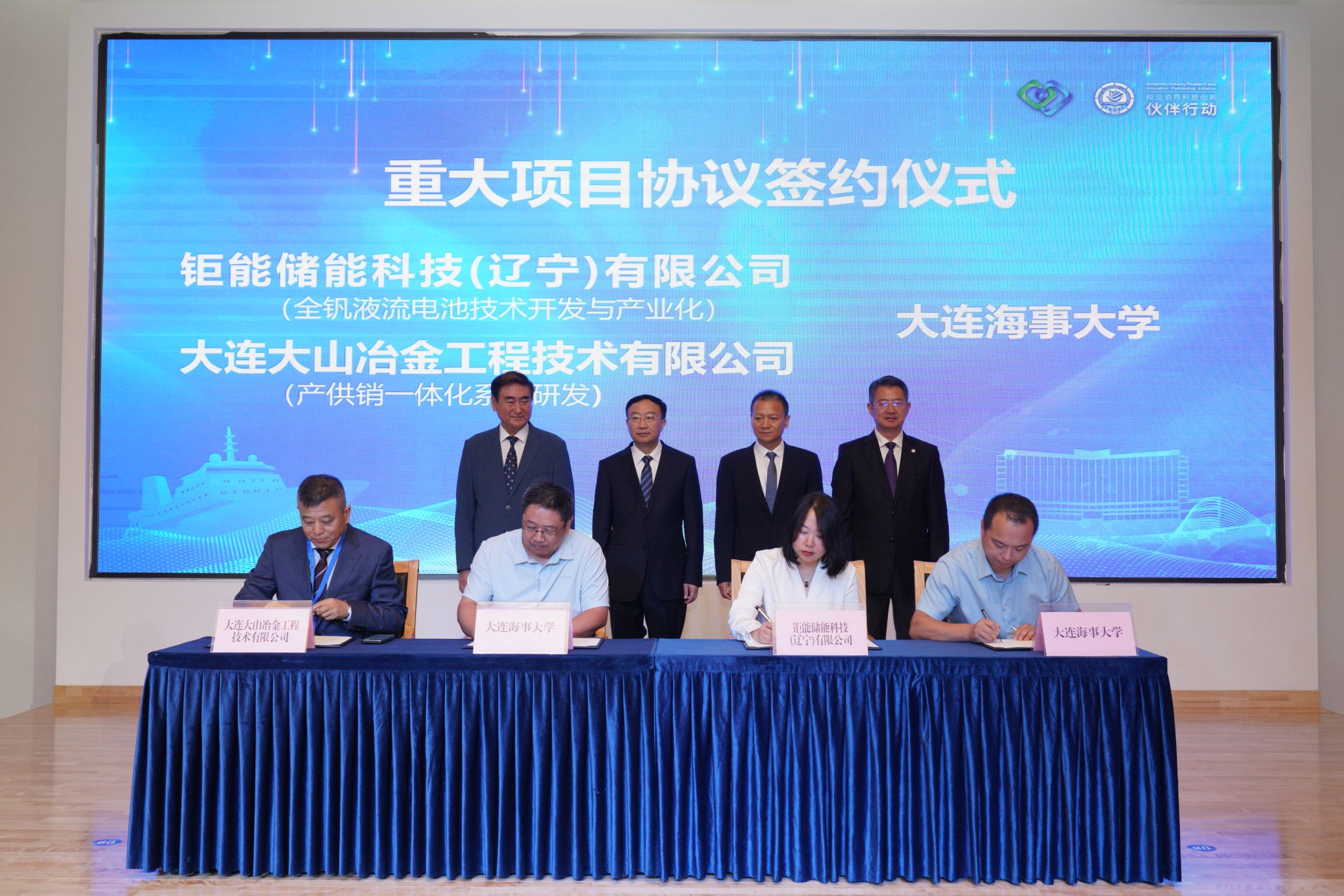 世俱杯sjb教师马相坤、李朝辉、张国庆、王建军分别与钜能储能科技(辽宁)有限公司、大连大山冶金工程技术有限公司、华海慧洋(大连)科技有限公司、辽宁蓝金矿产资源开发有限公司签订了重大项目协议。