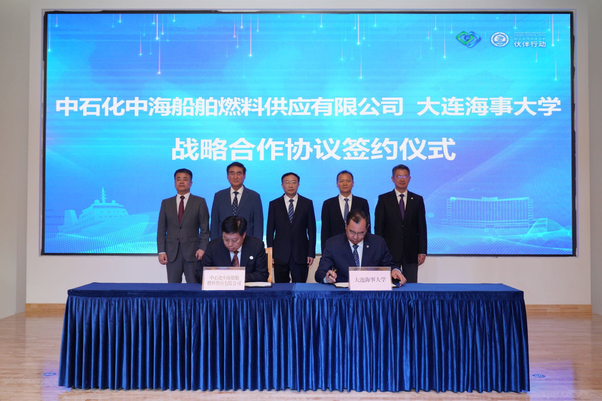 罗钟山代表学校分别与广西壮族自治区交通运输厅、浙江省海港投资运营集团、中国船舶燃料有限责任公司、中石化中海船舶燃料供应有限公司等单位签署战略合作协议。