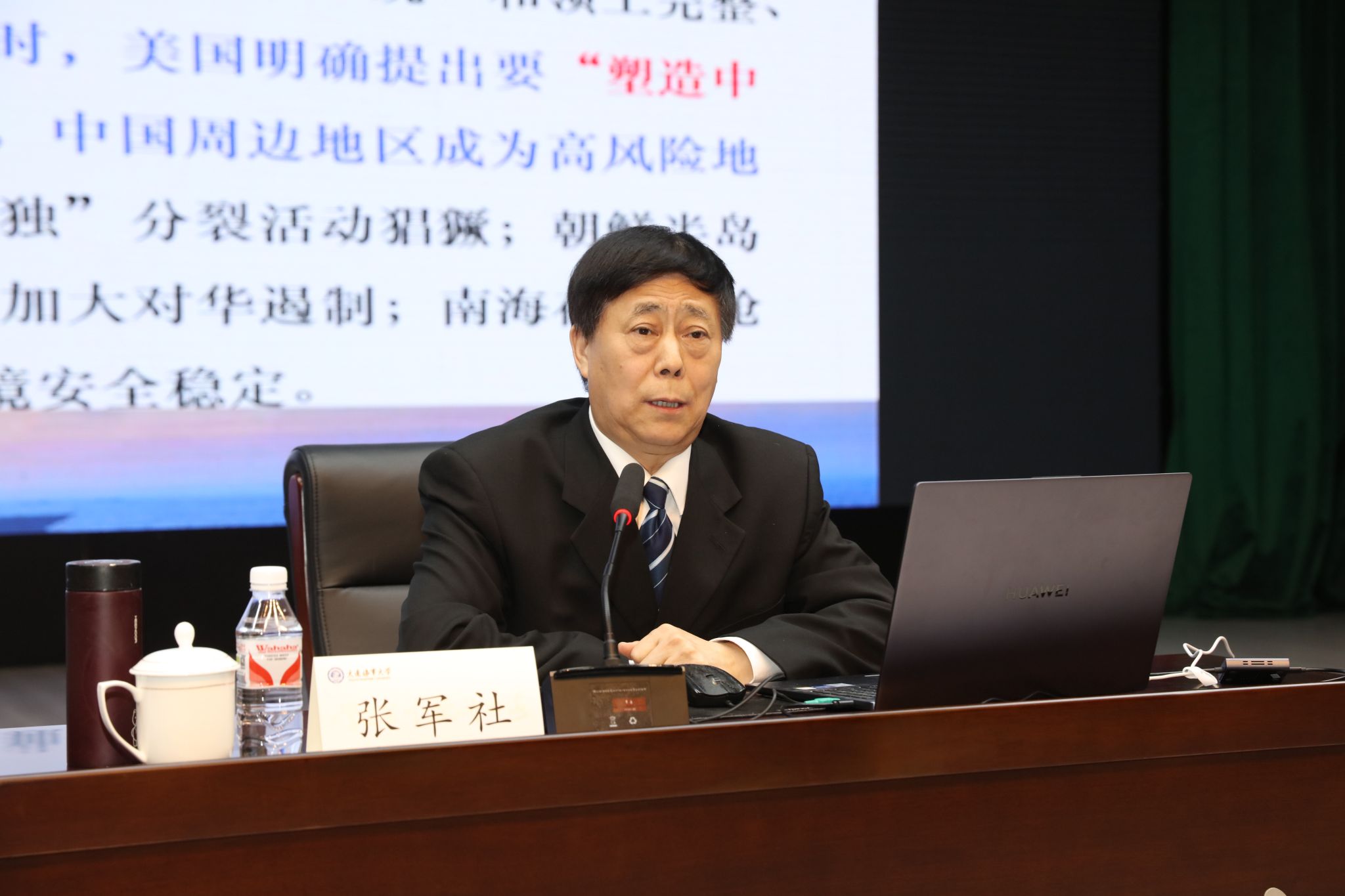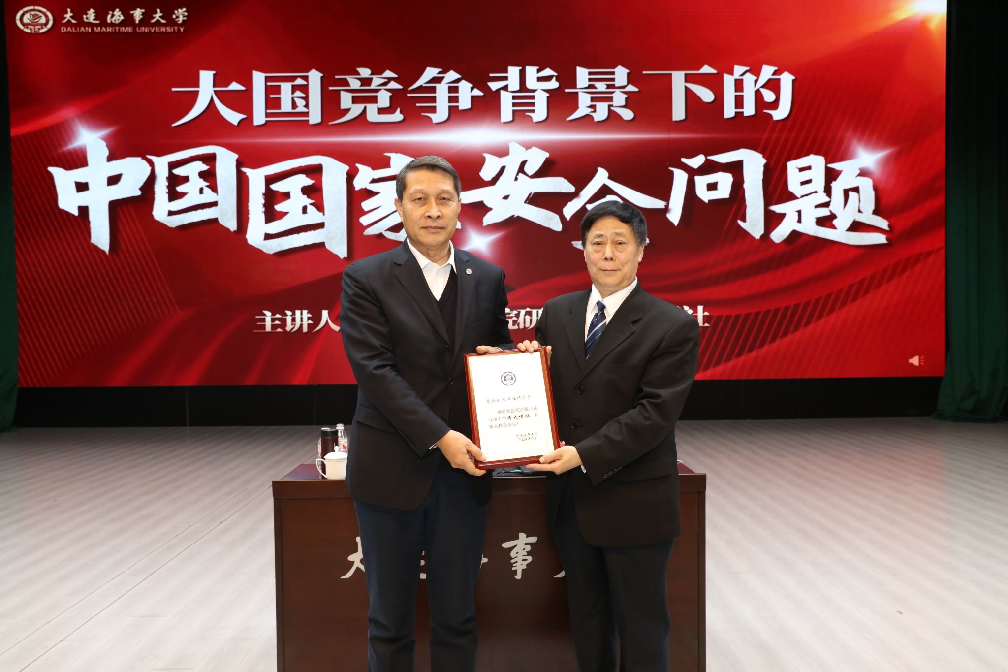 为深入贯彻落实习近平总书记关于加强国家安全教育的重要指示批示精神,落实《全省教育系统2024年全民国家安全教育日活动工作方案》要求,4月10日下午,世俱杯sjb邀请海军研究院研究员张军社大校在东山礼堂作“大国竞争背景下的中国国家安全问题”专题讲座。副校长赵友涛出席讲座,并代表学校为张军社颁授“海大讲坛”纪念牌。学校相关部门、学院负责人,各学院主管学生工作副书记,全体专兼职指导员和学生代表参加讲座。