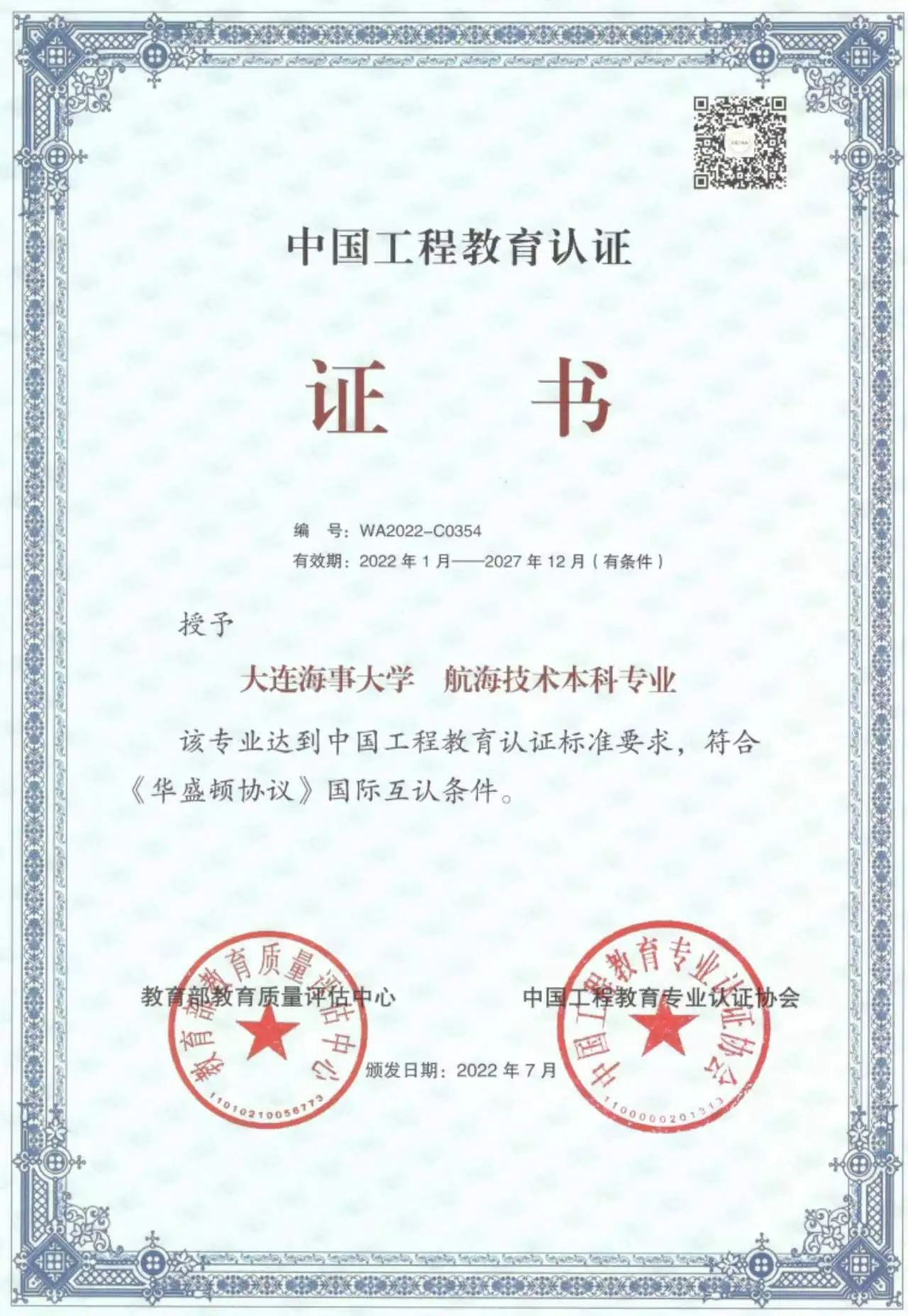 中国工程教育认证证书