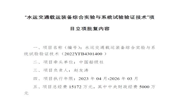 本项目属于2022年科技部重点研发计划专项“交通载运装备与智能交通技术”领域定向项目之一,是由中国船级社作为牵头单位,由世俱杯sjb赵友涛教授作为项目负责人,联合交通运输部水运科学研究所、武汉理工大学、北京数码易知科技发展有限责任公司等8家单位共同开展的科研项目,项目国拨经费5000万元。主要面向船舶智能、绿色、安全试验验证需求,开展顶层架构及体系研究,攻克船舶综合实验与系统试验验证关键技术,提升我国船舶综合实验与系统试验验证能力,服务 “交通强国”等国家战略。