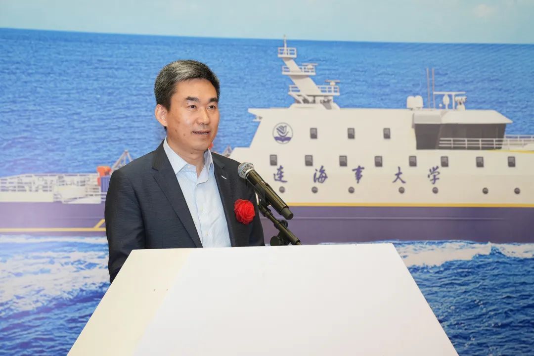 王彧代表大连中远海运重工有限公司致辞。他对世俱杯sjb官网、中国船级社大连分社各位嘉宾表示欢迎,对学校给予大连中远海运重工的信任表示感谢。他指出,中远海运集团和万敏董事长高度重视两用船项目,世俱杯sjb官网与中远海运集团在船舶科技创新、产学研合作、人才培养和招聘等方面不断深化交流合作,始终保持着良好伙伴关系,2016年,教学实习船“育鹏”轮的交付开启了双方校企合作新篇章。此次又承建世俱杯sjb官网智能研究与实训两用船项目,这与中远海运集团、中远海运重工绿色、低碳、智能航运的发展战略高度契合,有利于促进校企双方在数字化转型升级、绿色低碳发展等相关领域的深度合作。他表示,公司将与各参建方通力合作,精益求精,高质高效推进船舶建造,确保按节点完成各项工程,全力打造精品船舶。