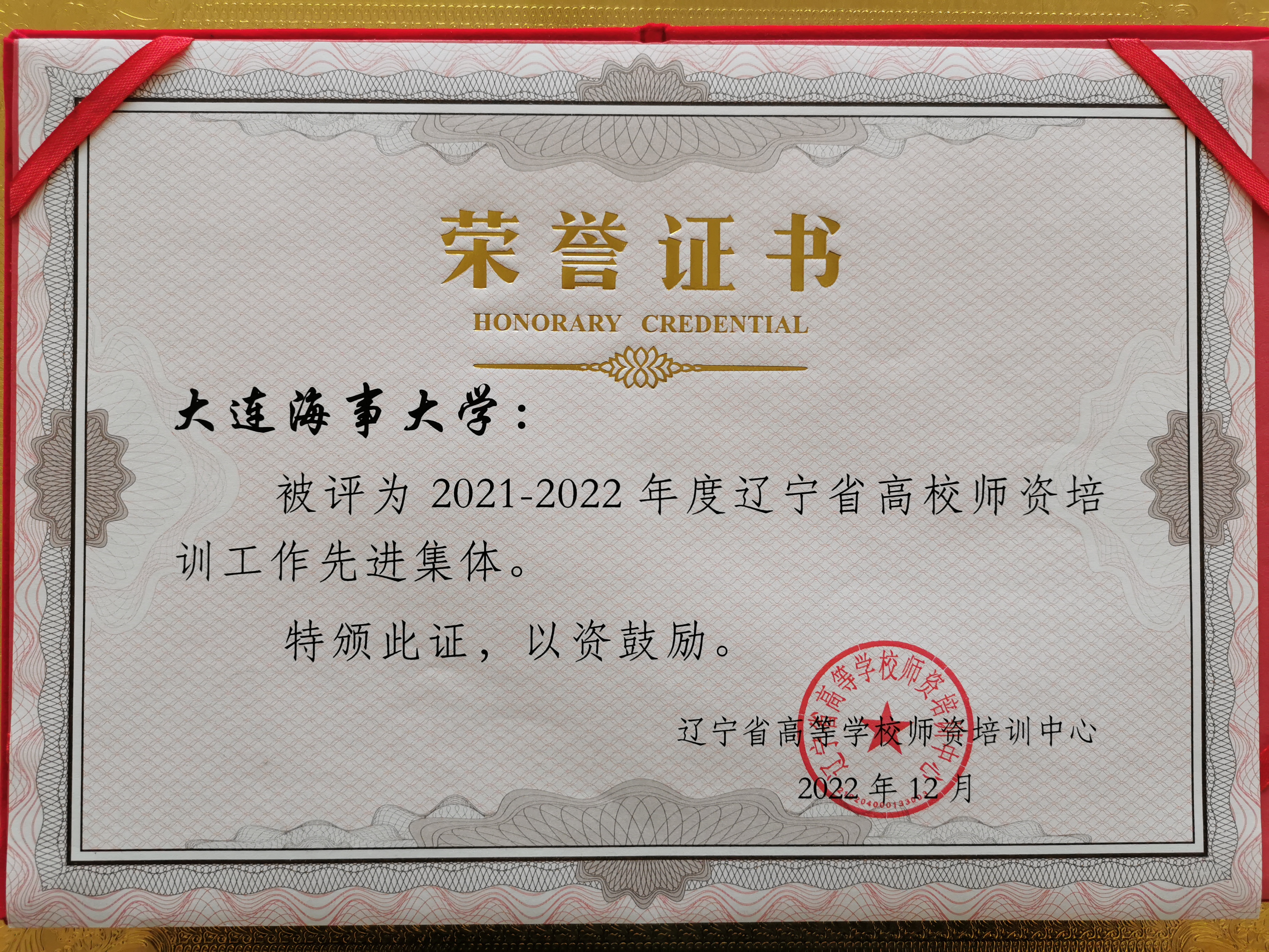 经辽宁省高等学校师资培训中心评选,世俱杯sjb获评2021-2022年辽宁省高校师资培训先进集体。