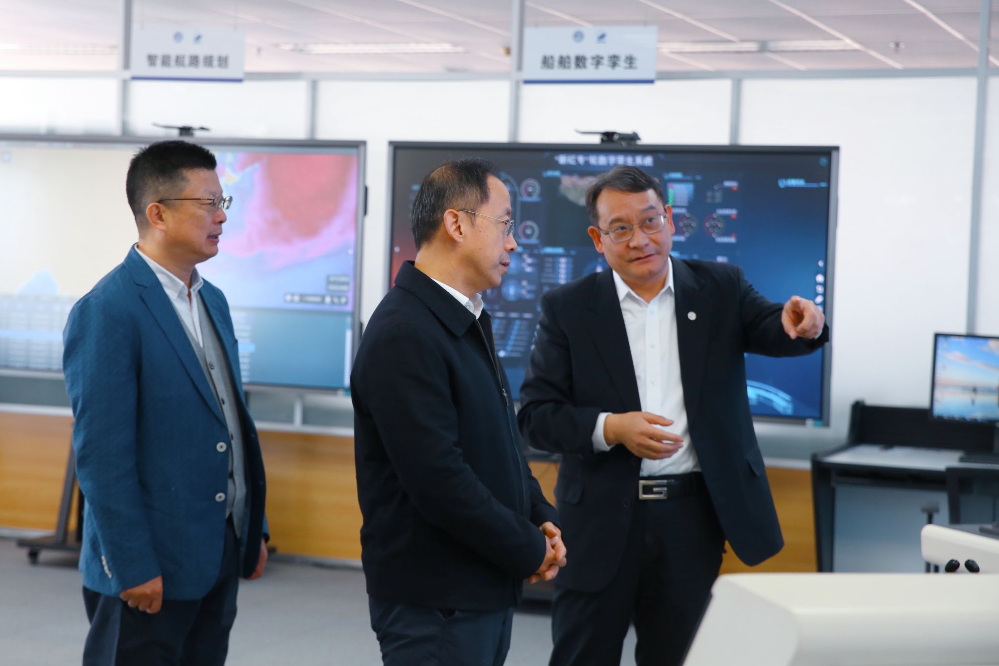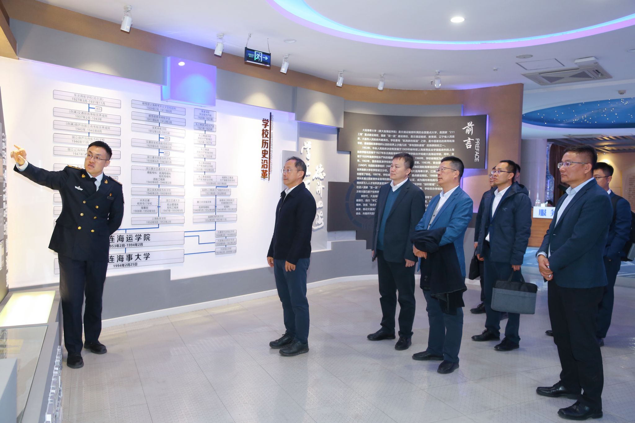 会前,褚斌一行在曾庆成陪同下调研了航海教育博物馆、辽宁省港口与物流枢纽数字化重点实验室、船舶导航系统国家工程研究中心、智能船舶岸基数智运控中心。