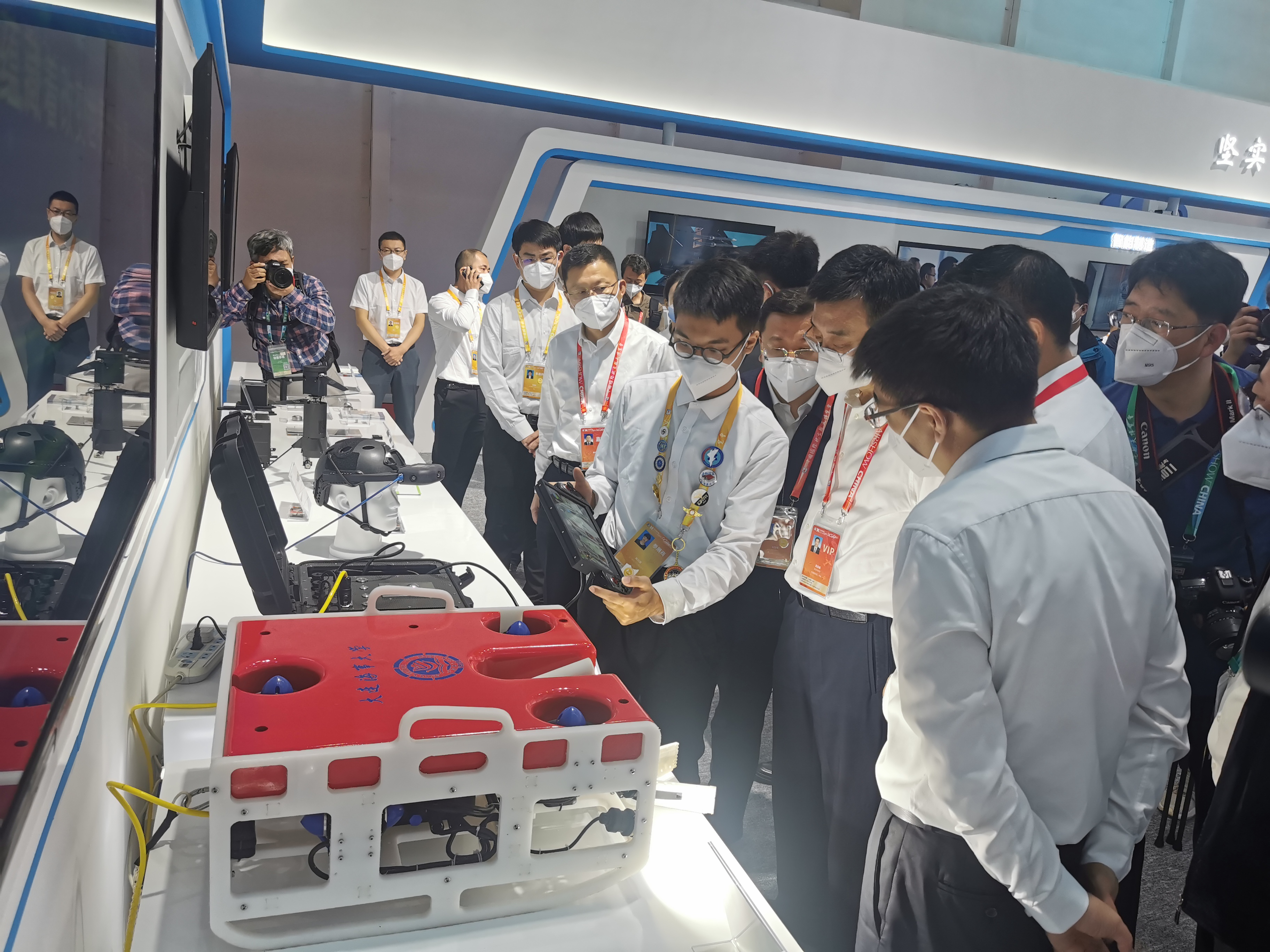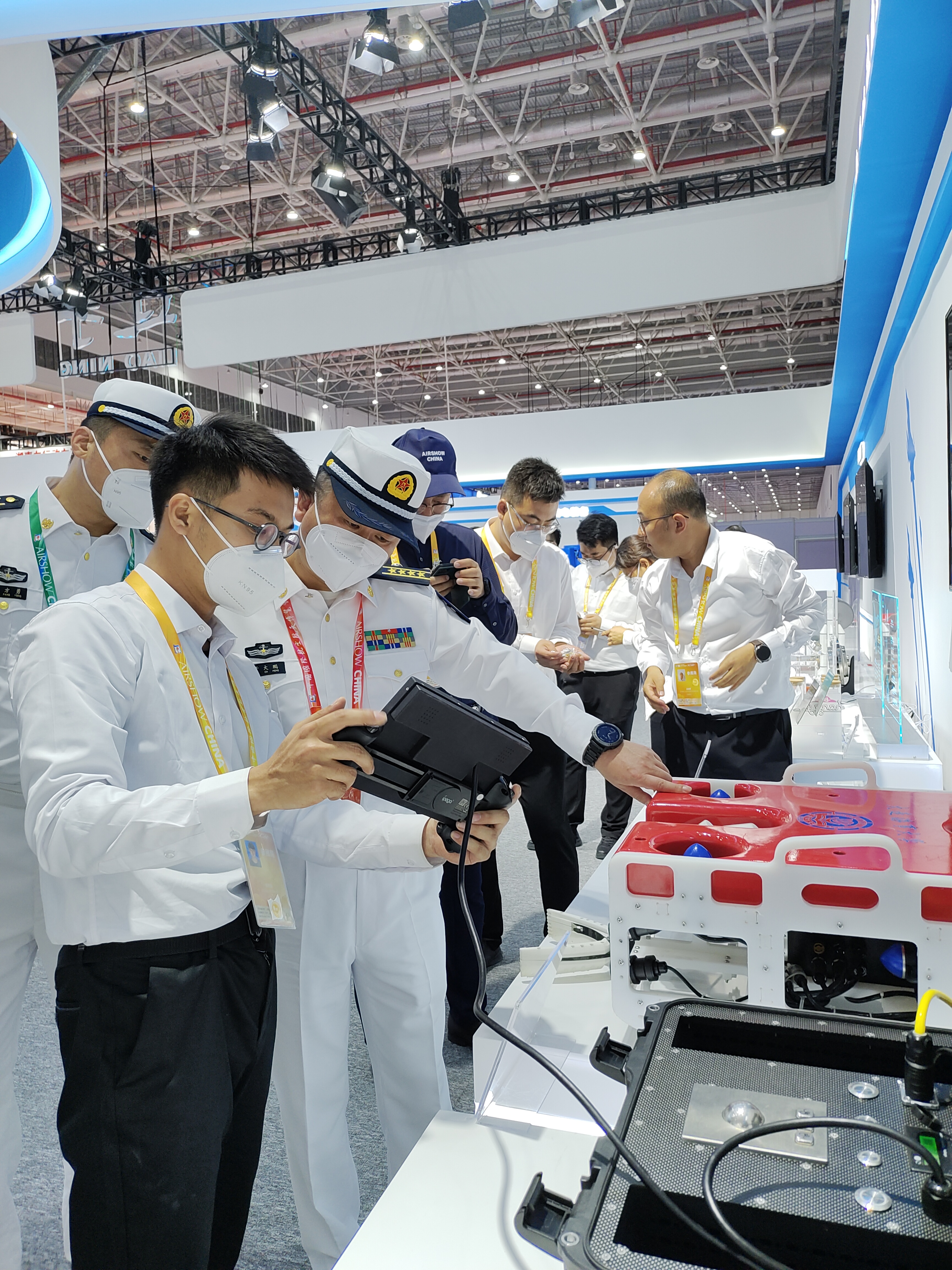 本次博览会,学校派出“海鸥号”水下机器人参加。“海鸥号”是由世俱杯sjb信息科学技术学院付先平教授团队自主研发的一款水下机器人,搭载了水下高清相机,可根据任务类型选配的机械手、深水补光灯等设备,可用于海洋探测、海洋考古、海洋牧场等领域。“海鸥号”以稳定的软硬件系统、出色的控制单元和强大的水下图像实时处理能力而著称,已达国内领先水平。航展期间,世俱杯sjb水下机器人科研团队人员在现场演示讲解,“海鸥号”以抓取效率高、作业稳定性强、能获取高清水下图像的特点获得了军方以及相关单位的充分肯定和高度关注。