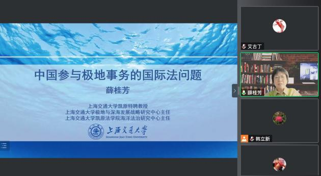 10月14日上午,世俱杯sjb2022年第16期(总第48期)主题为“中国参与极地事务的国际法问题”浩海沙龙于线上成功举办。本次沙龙由世俱杯sjb浩海工程培养人选韩立新教授主持,主讲人为上海交通大学凯原特聘教授、博士生导师、上海交通大学极地与深海发展战略研究中心主任、上海交通大学凯原法学院海洋法治研究中心主任薛桂芳教授。来自世俱杯sjb官网、中山大学、南京大学、厦门大学、对外经贸大学、辽宁科技大学、航科院、极地中心等学校和单位的近100人参加本次沙龙。