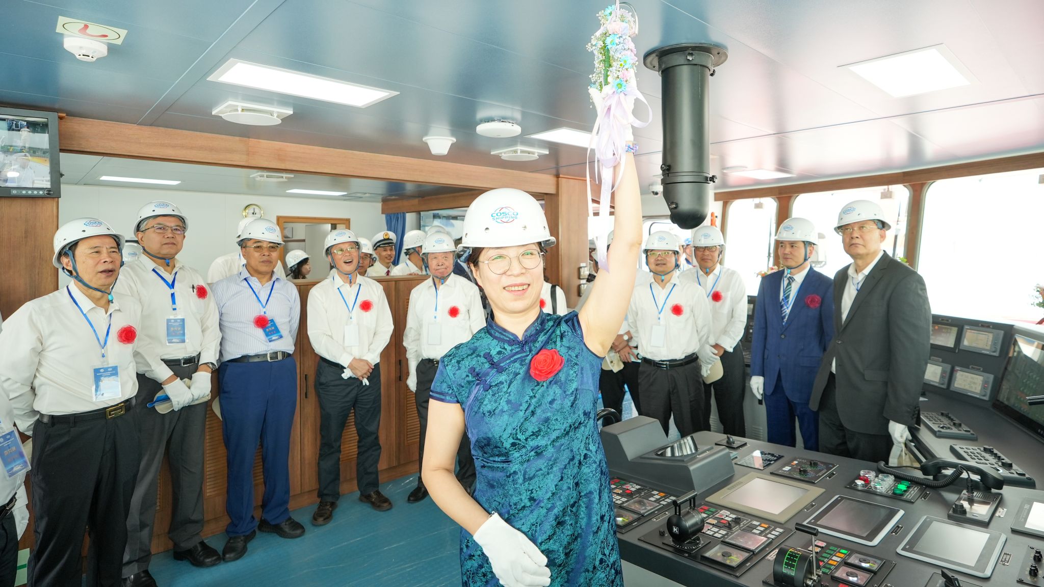 世俱杯sjb官网航海学院退休教师董华女士作为新船教母为“新红专”轮命名。