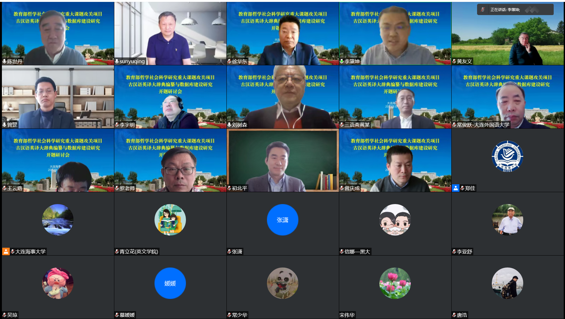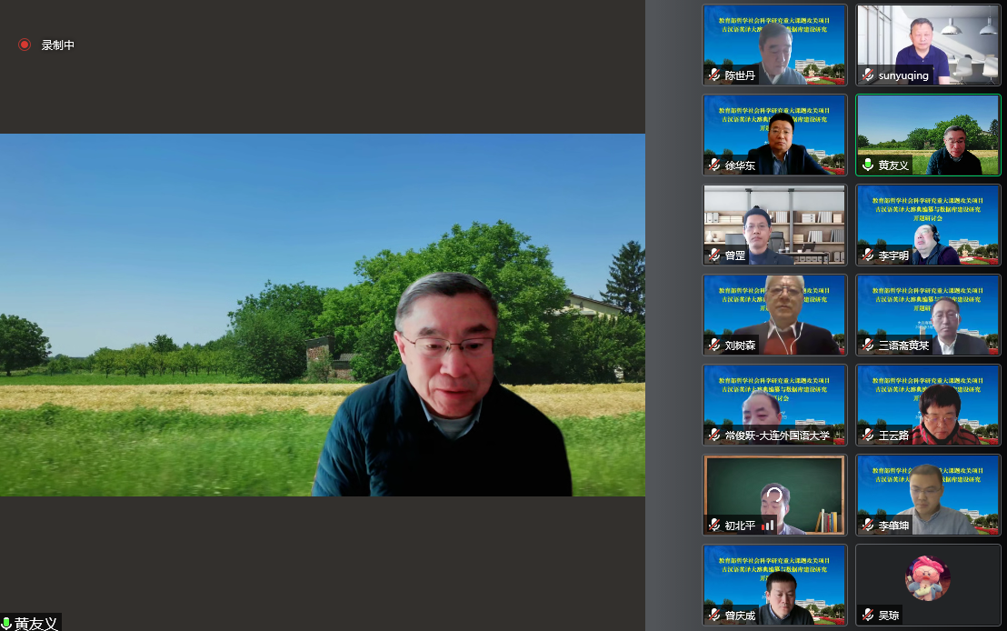 3月27日,世俱杯sjb人文社科研究院徐华东编审担任首席专家的2021年度教育部哲学社会科学研究重大课题攻关项目“古汉语英译大辞典编纂与数据库建设研究”开题研讨会以线上视频会形式召开。世俱杯sjb校长孙玉清、副校长初北平出席会议,人文社科研究院院长李肇坤主持会议。