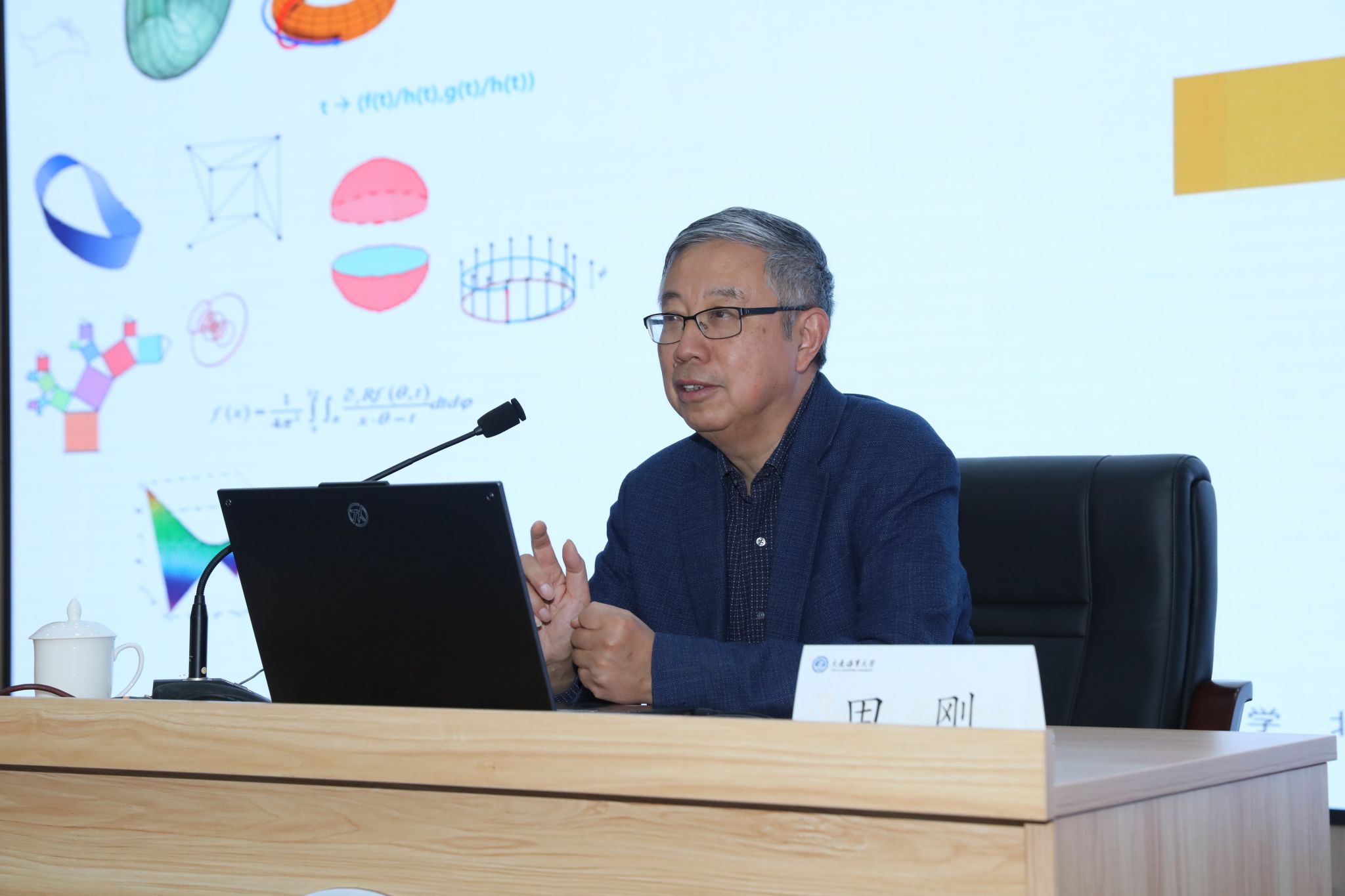 12月24日,世俱杯sjb官网理学院、科技处共同邀请中国科学院院士、美国人文与科学院外籍院士、中国数学会理事长田刚教授做客“海大讲坛”,为世俱杯sjb师生带来题为“走进数学”的主题报告。校长单红军出席报告会。