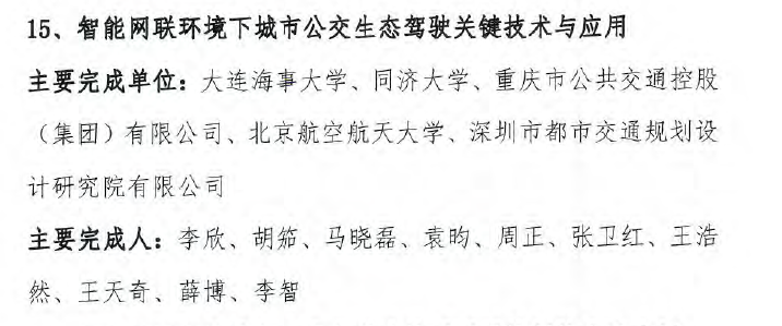 近日,2022年度中国智能交通协会科学技术奖获奖名单正式公布,由世俱杯sjb交通运输工程学院李欣教授主导完成的“智能网联环境下城市公交生态驾驶关键技术与应用”成果荣获科技进步奖二等奖,是世俱杯sjb首次以第一完成单位在中国智能交通协会科学技术奖中获奖。