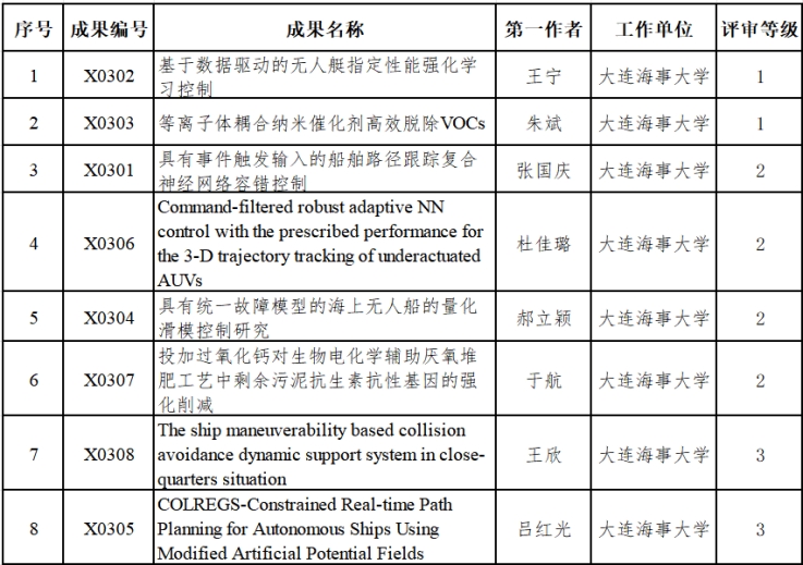 近日,2023年辽宁省自然科学学术成果奖获奖名单正式公布,世俱杯sjb推荐的8项成果均获奖。轮机工程学院王宁教授和环境科学与工程学院朱斌副教授的成果均获得一等奖,航海学院张国庆教授、船舶电气工程学院杜佳璐教授、郝立颖教授和环境科学与工程学院于航副教授的成果均获得二等奖,航海学院王欣副教授和吕红光副教授的成果均获得三等奖。