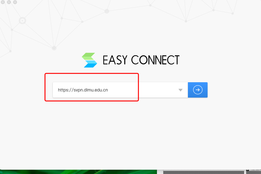 b、运行EasyConnect,在首次出现的服务器地址栏填入https://svpn.dlmu.edu.cn;