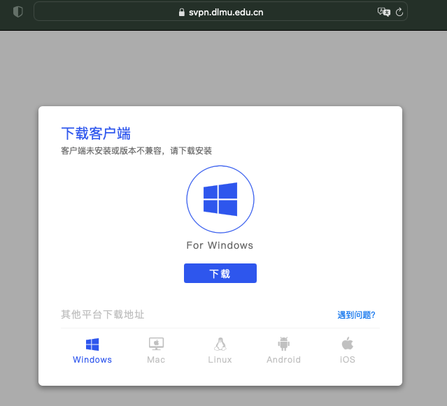 a、下载VPN客户端:https://svpn.dlmu.edu.cn/portal/#!/down_client,安装客户端EasyConnect;