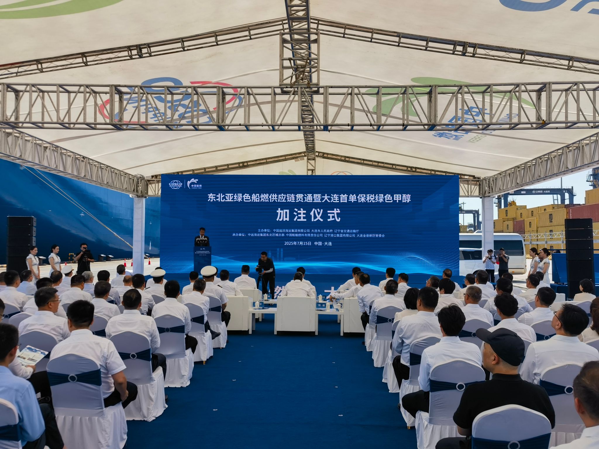 7月15日上午,东北亚绿色船燃供应链贯通暨大连首单保税绿色甲醇加注仪式在大连港举行,中国船燃成功为我国首艘甲醇双燃料集装箱船“中远海运洋浦”轮加注500吨国产保税绿色甲醇。辽宁省政府党组成员吴春耕,中国远洋海运集团副总经理张峰,辽宁省政府副秘书长孙伟,辽宁省交通运输厅厅长冯万斌,大连市委副书记、金普新区党工委书记、大连自贸片区党委书记刘恩举以及海关、海事、税务、边检、船级社等中直单位,金普新区、长兴岛经济技术开发区等有关领导出席仪式。...